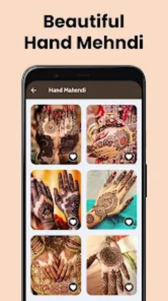 该应用程序还提供其他功能,如与社交分享平台共享图像、查看最新设计、放大查看Mehndi设计的细节以及收藏任何设计以供将来参考。